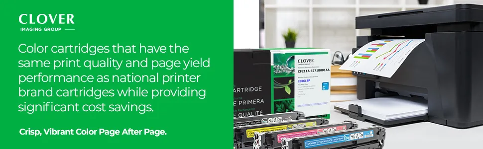 Clover Imaging extended yield remanufactured printer cartridges are designed, engineered, and manufactured to offer superior quality and performance, while surpassing the OEM’s highest page yields. Extended yield cartridges guarantee higher yields and lower cost-per-page without sacrificing density or print quality. Clover Imaging’s extended yield remanufactured printer cartridges are highly sustainable and have been GreenCircle certified as closed-loop products that contain at least 86% recycled content. For businesses looking for high-quality, sustainable printing at an affordable price, the choice is clear.