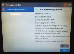 If you received a message about a "Used Cartridge" after installing, please follow the step-by-step instructions.