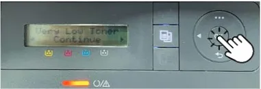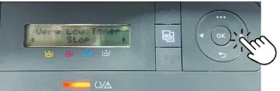 Step 2: The message "Very Low Toner Continue" will appear on display. Just Click OK.